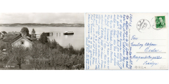 Gvarv. Båt ved brygge, noen hus og folk i robåt. Påskr. 08. Kv.2. / Knut J. Myrvang (Diverse) v | 0 | 1/12 18:44:00 | kr. 50,- |