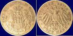 -1- Hamburg 5 mark 1908, kv. 1/1+ v | 2 | 5/12 17:40:00 | kr. 210,- |