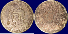 -3- Prøyssen 5 mark 1901 A , kv. 1/1+, skadet. v | 4 | 5/12 17:42:00 | kr. 137,- |