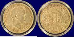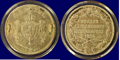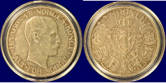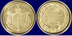 -28- 2 kroner 1906, i sølvbrosje, kv. 1/1+, pusset v  | 1 | 27/2 17:57:00 | kr. 1,- |