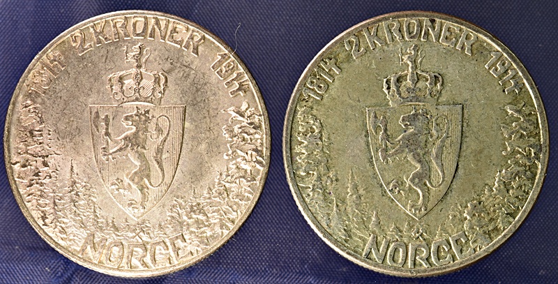 2377431: -13- Lott 2 stk. 2 kroner 1914 jubileum, kv. 1 og 1+
