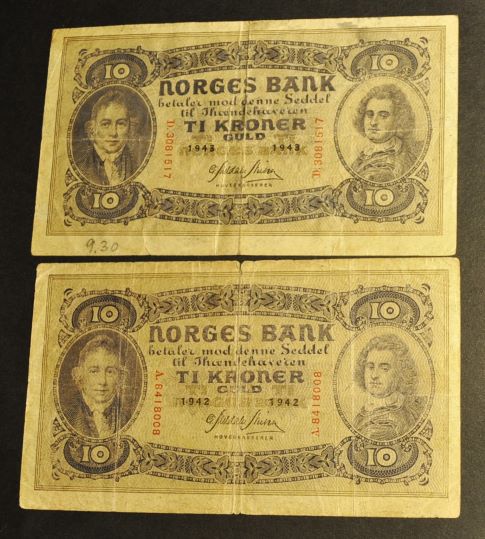2377739: 10 kr. 1942 A og 1943 D * VK * 2 utg. *