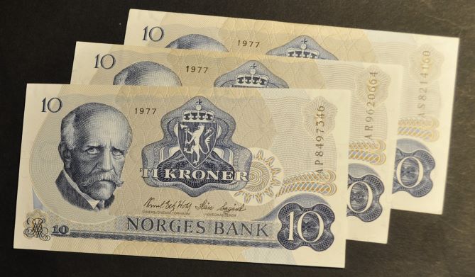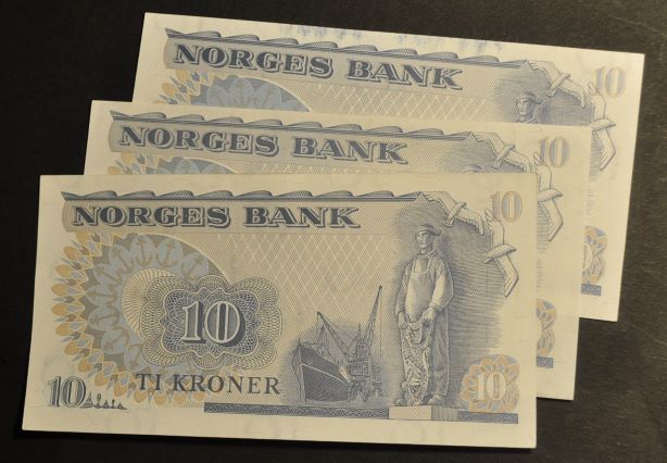 Bilder er sedlene du får. Blekk avsmitting fra prgening på litra AP.Vurder fra bilder. Estimert verdi ca. kr.200.