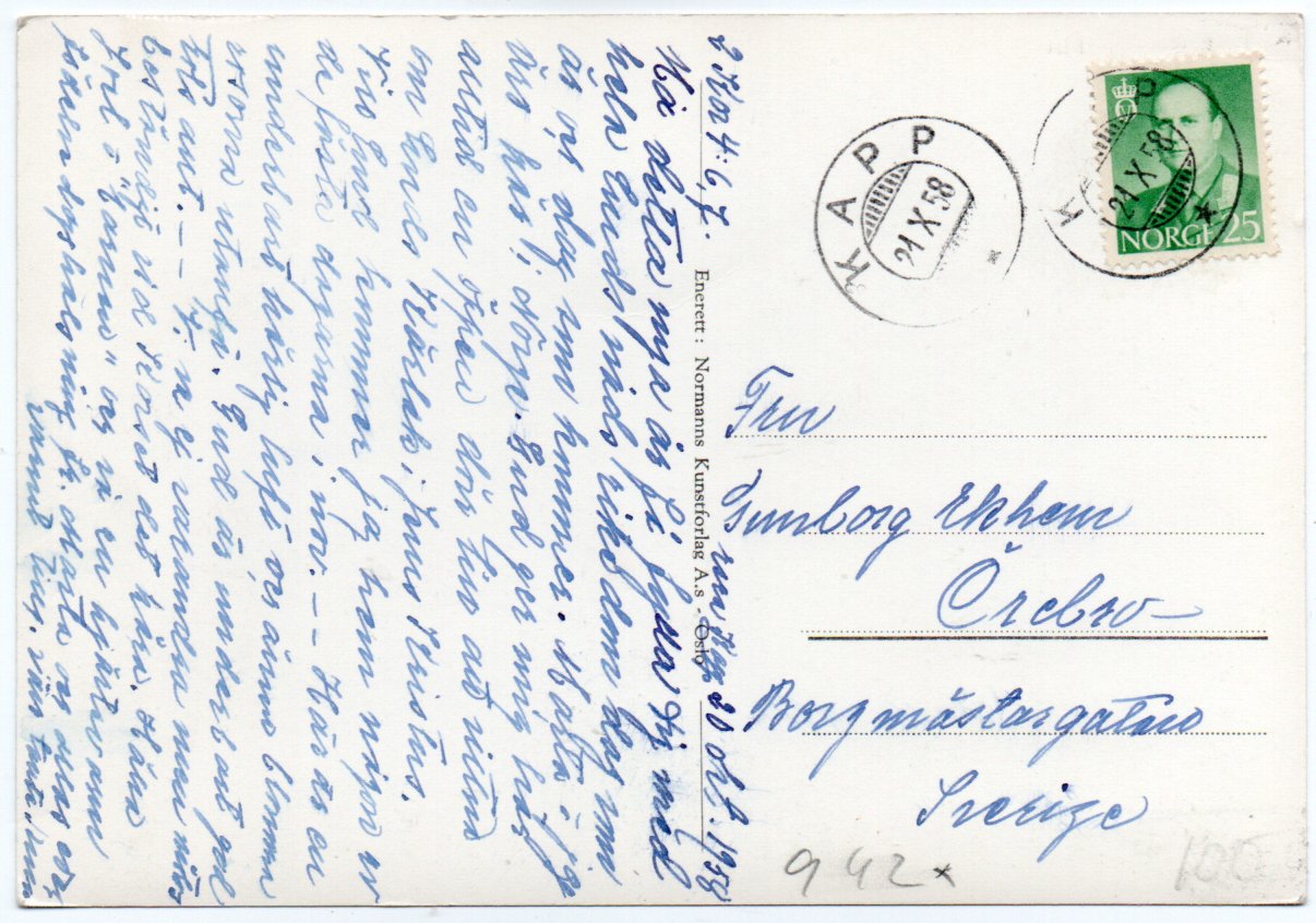 2378097: Kapp med Hamar-Kapp fergen. Stmp.Kapp 1958. Kv.2.