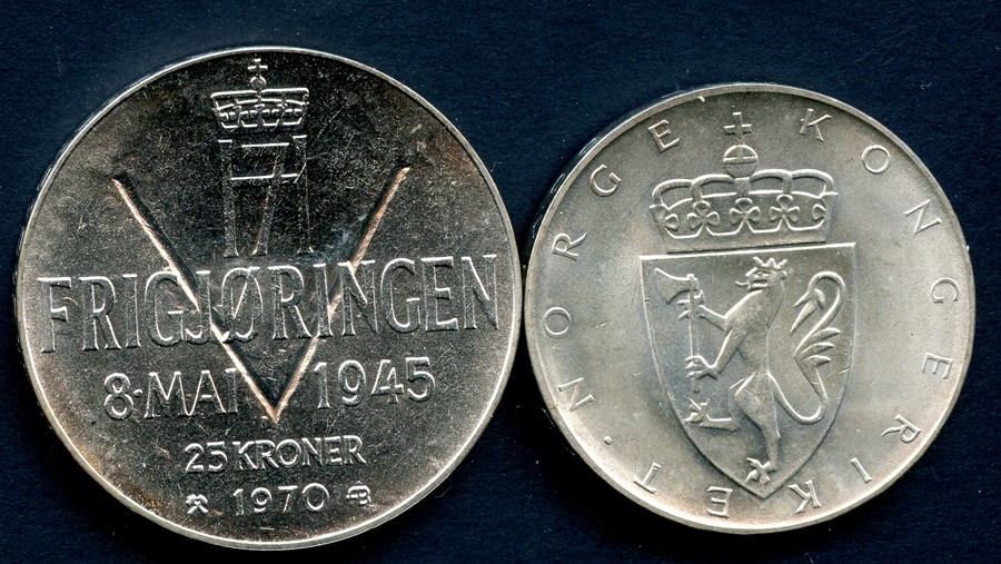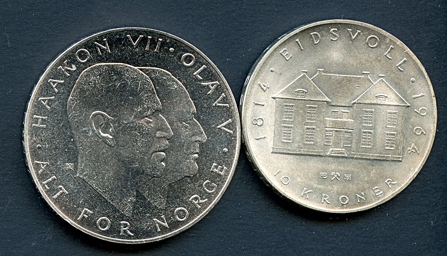 2378723: -17- Norge, lot 2 mynter 1964,-70. AU/Unc