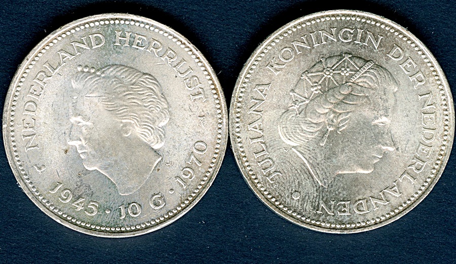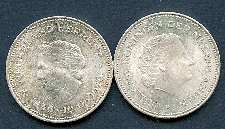 2378724: -18- Nederland , lot 2 stk 10 Gulden 1970, XF/AU