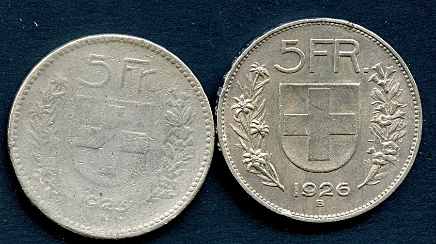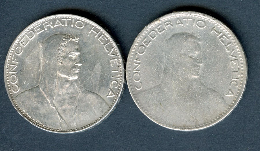 2378725: -19- Sveits , lot 2 stk 5 Francs 1923,-26, VK.