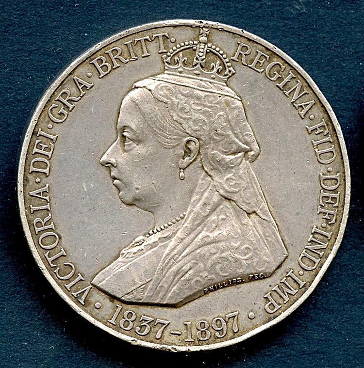 Til minne om dr. Victorias diamantjubileum 1897, sølv. 31,8 gram. Ikke navnet. Lenker.