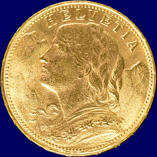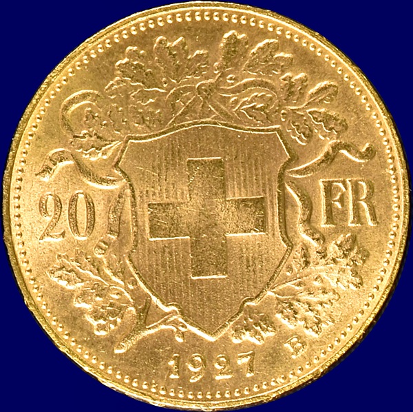 2378918: -20- Kopi. Sveits 20 Francs 1927, kv. 1+/01.