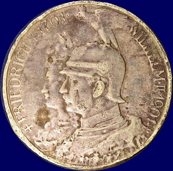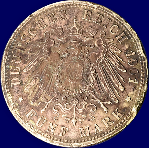 2379024: -3- Prøyssen 5 mark 1901 A , kv. 1/1+, skadet.