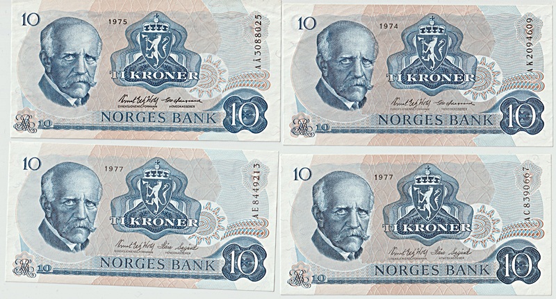 10 kr. 1974AK, -75AÅ, -77AC, -77AE &-77AE