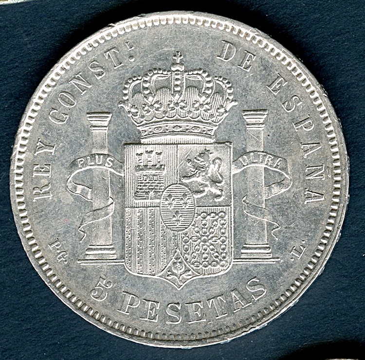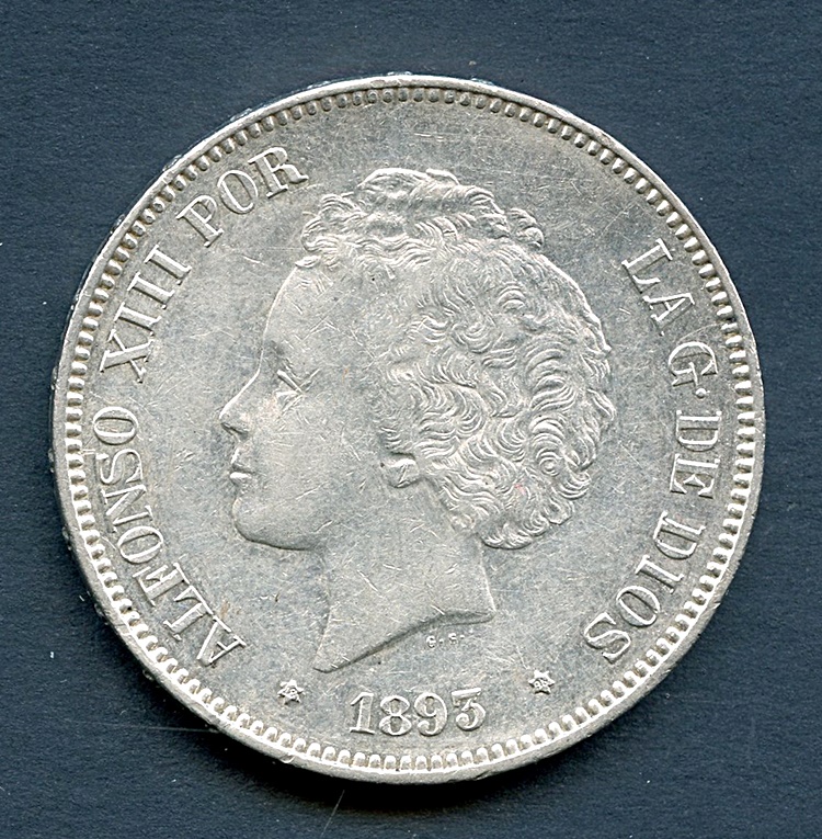 2379349: -12- Spania 5 ptas 1893, kv. 1+/01, riss.