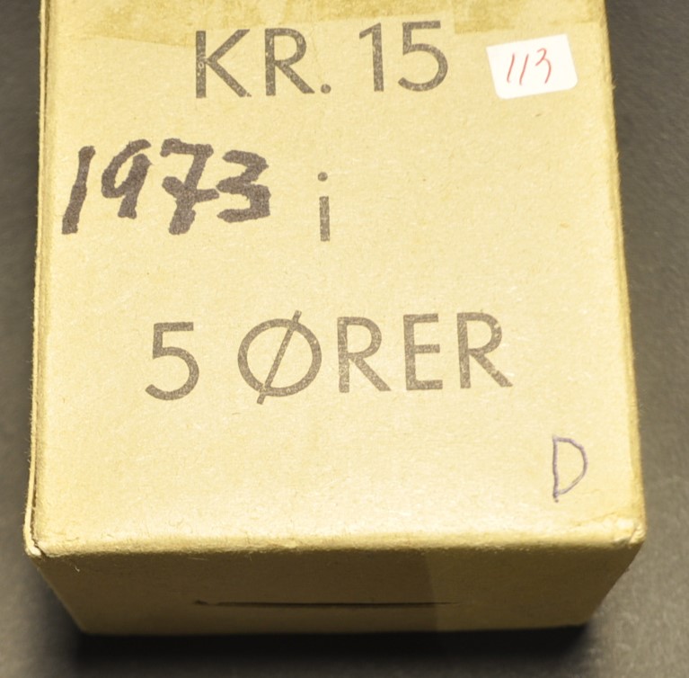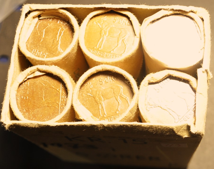 2379586: 6 pakning originale myntruller 5 øre 1973