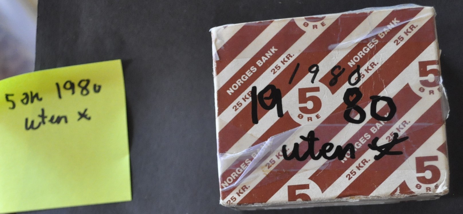 2379899: 10 pakn.5 øre org.ruller 1980 uten * * Katv.kr. 2500