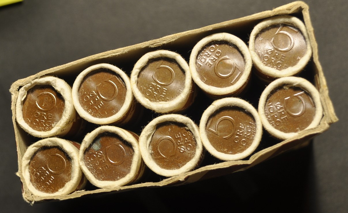 2379935: 10 pakn.5 øre org.ruller 1982 * * Katv.kr. 2500