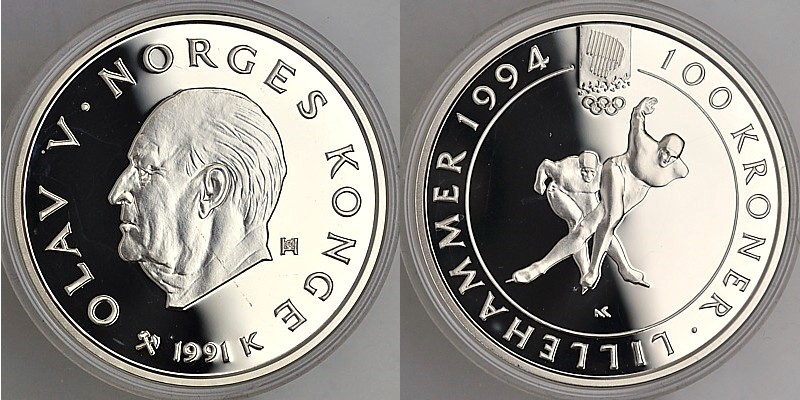 1,5 unser sølv. Lillehammer OL 1994, Skøyteløpere og Barn på ski. I original eskje med omslag og ekthetssertifikat.