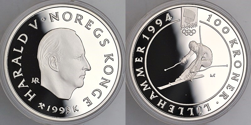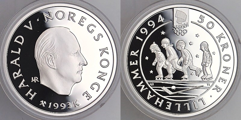 1,5 unser sølv. Lillehammer OL 1994, Alpinist og Barn på skøyter. I original eskje uten omslag og uten ekthetssertifikat.