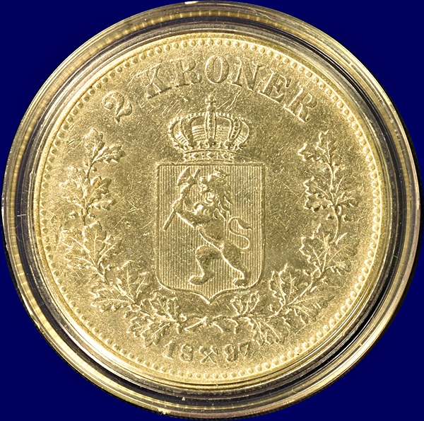 2380308: -8- 2 kroner 1897, kv. god 1, grafitti advers