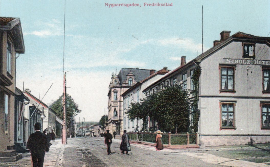 2380415: Fredriksstad. Kolorert kort fra Nygaardsgaten. Ubr. Kval 1.