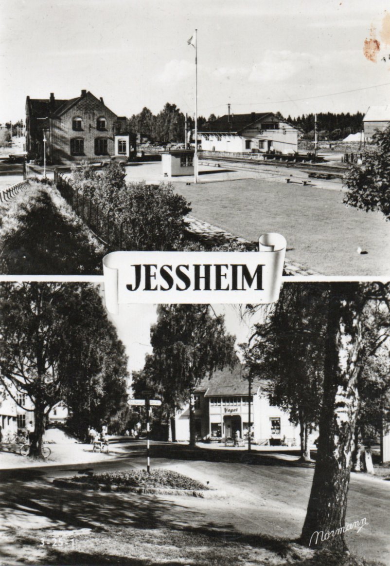 2380432: Jessheim. To-delt kort med stasjonen. Ubr. Kval 1-2.