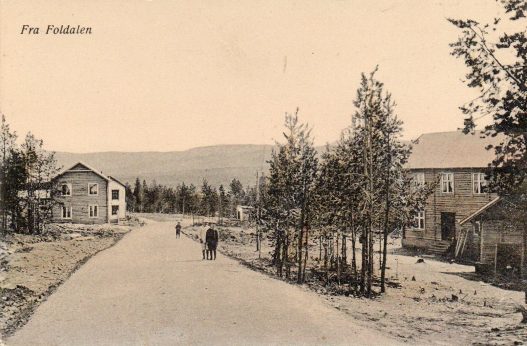 2380436: Foldalen. Noen hus og barn på veien. Normann-kort. Ubr. Kval 1-2.