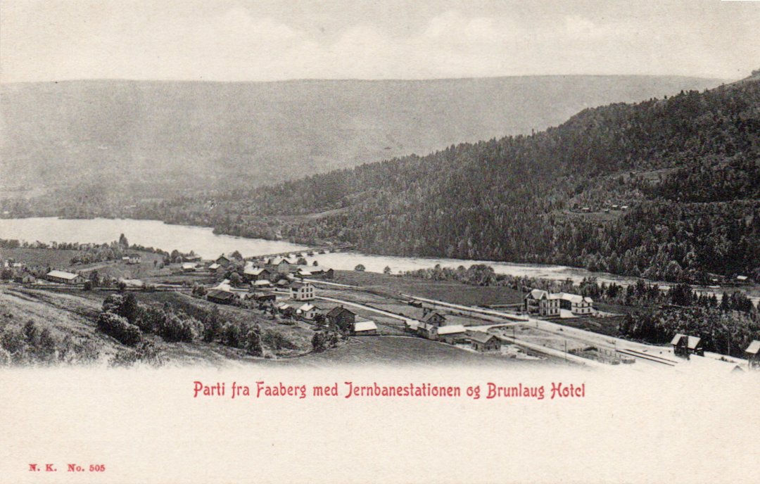 2380458: Faaberg med jernbanestationen og Brunlaug Hotel, Ubr. Kval 1-2.