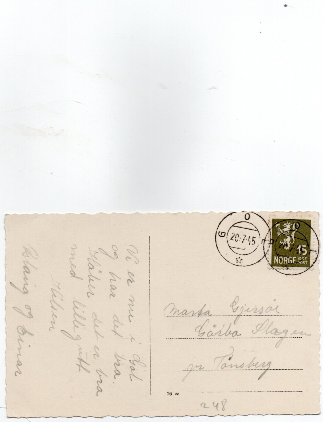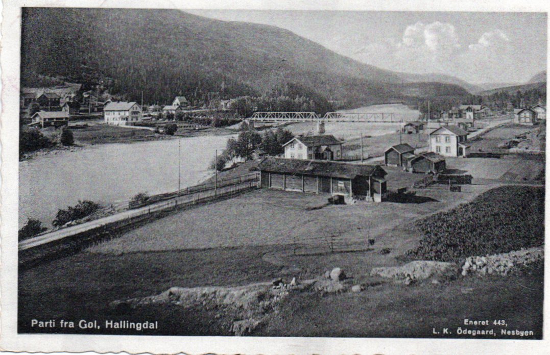2380478: Gol med noen gårder og bro. Flott stempel Gol 1945. Kv.1-2.