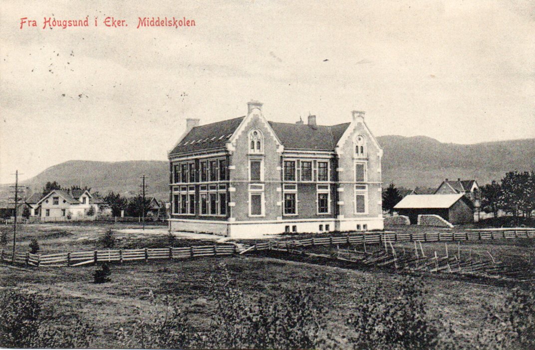 2380479: Hougsund i Eker. Middelskolen. H.Lyche & Co. Stmp.1914. Kval 1-2.