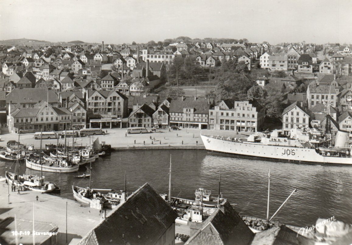 2380573: Stavanger. Havnen med mange båter og busser. Ubr. Kv.1-2.