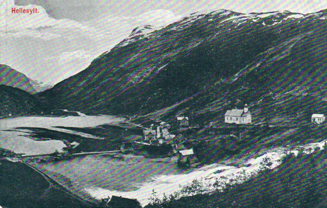 2380649: Hellesylt. Noen hus og kirken. H.Nic Meyer 1907. Ubr. Kval 1-2.
