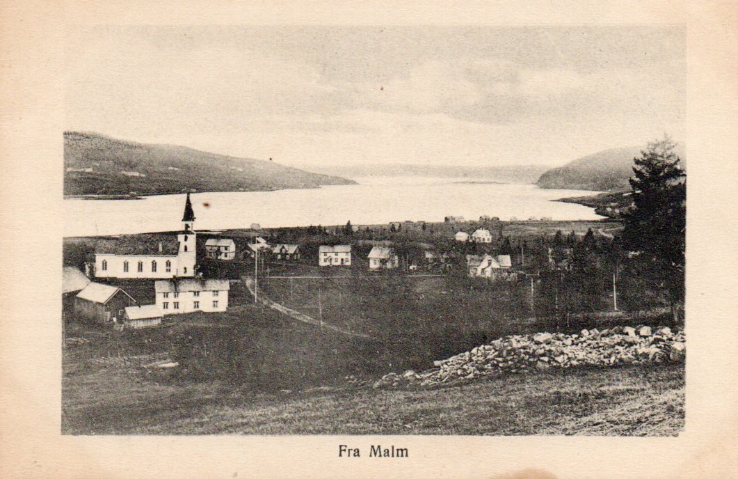 2380669: Malm. Noen hus og kirken. Ubr. Kval 2.