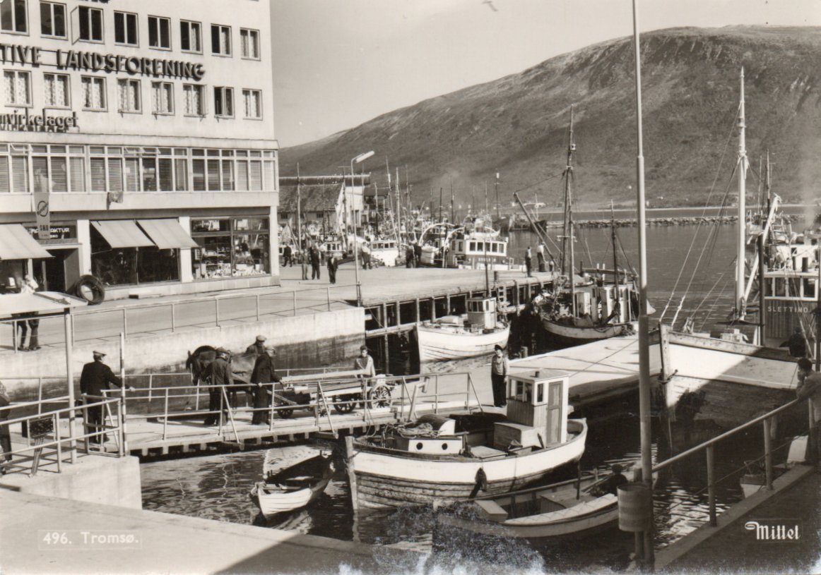 2380703: Tromsø. Havnemotiv med mange fiskebåter. Ubr. Kval 2.