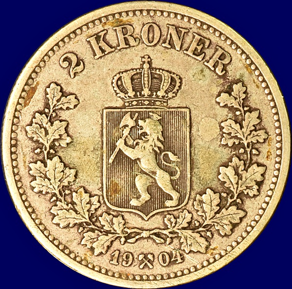 2380750: -13- 2 kroner 1904. kv. 1/1+, riper revers.