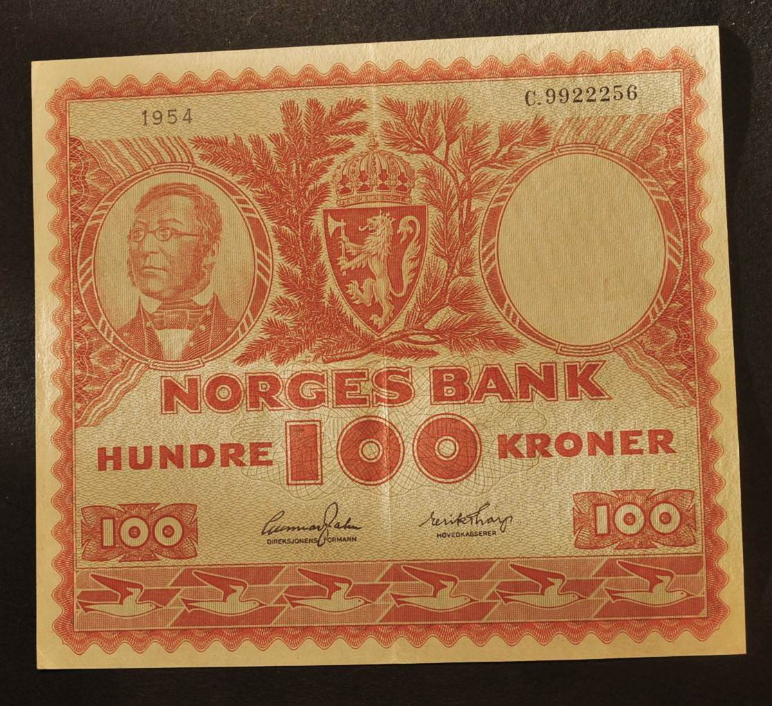 2380765: 100 kr. 1954 C * Kv. 1+/01 * Pen* Katv. kr. 1525 *