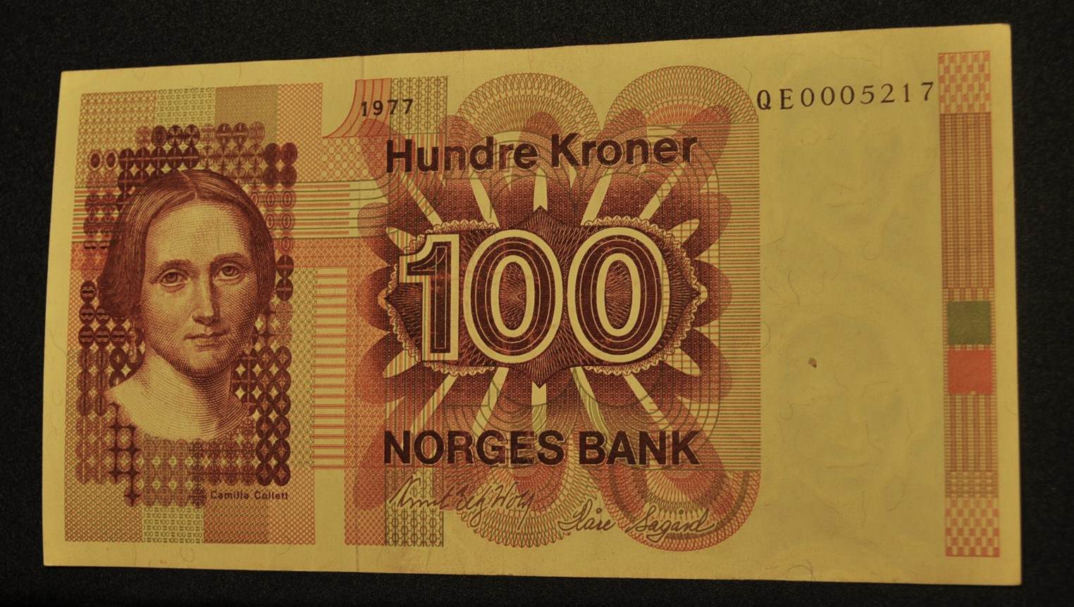 2380796: 100 kr. 1977 QE. Kv. 01. Sort årstall * Katv. kr. 950