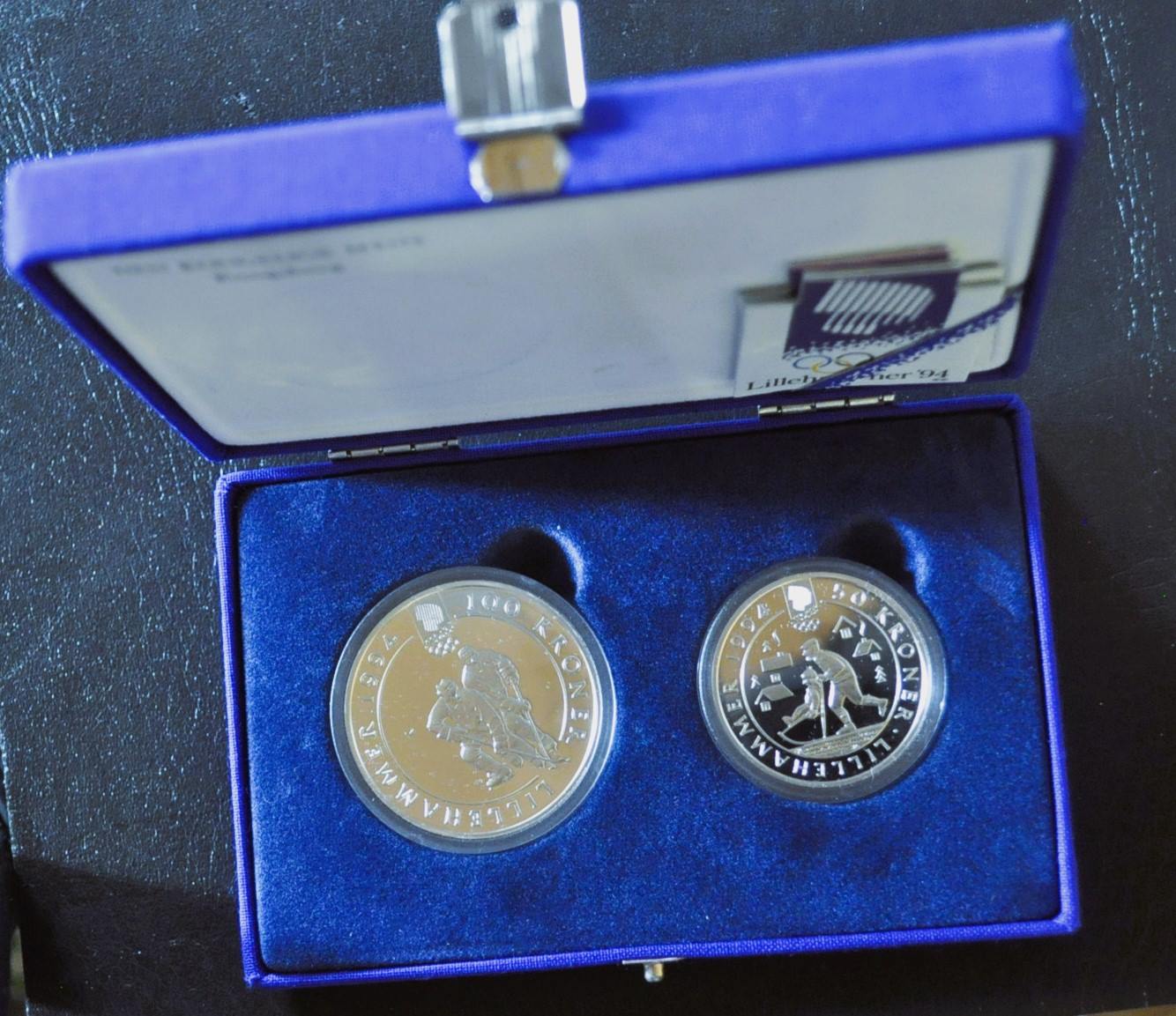 2380979: OL sett nr 3 1992 Med 100 kr. og 50 kr. sølv m/sert.
