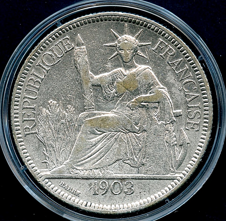 2381194: -12- Fr. Indokina, Piaster 1903, kv. 1, riper.