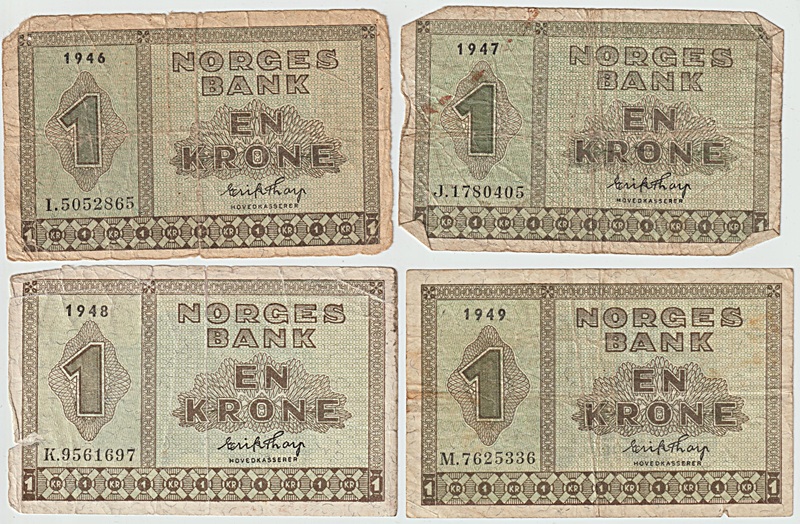 2381929: -5- Lott, 4 stk. 1 kroner 1946I-1949M, VK