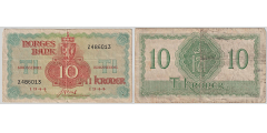 -9- 10 kr. 1944Z, London, kv. 1-, bretterift nede 1,5 mm. (Norway) v | 32 | 2/1 17:13:00 | NOK 340,- |
