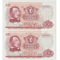 -10- Lott 2 stk. 100 kr. 1977, hhv. kv. 1 og 1+ (Norway) v | 4 | 2/1 17:14:00 | NOK 4,- |
