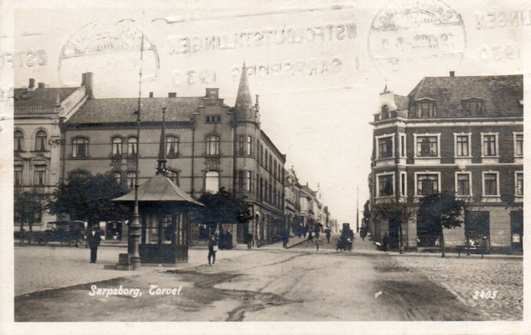 2378041: Sarpsborg. Torvet med liten kiosk. Se fint stmp.1930. Kval 1-2.