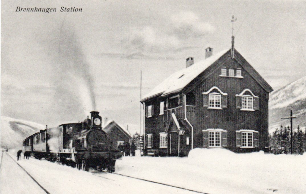 2378089: Brennhaugen Station med tog. G.B.735. Ubr. Kval 1-2.