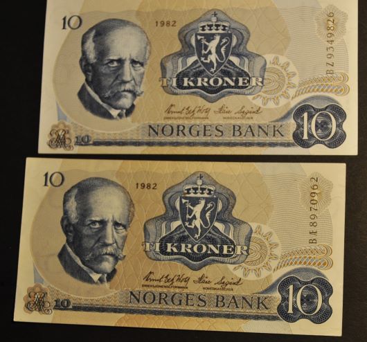 Bilder er sedlene du får. Vurder fra bilder. Estimert verdi kr.160 **