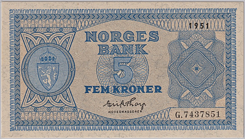 G.7437851. Signatur: Erik Thorp. Ex: Bergen Mynt&Seddel, 05/04