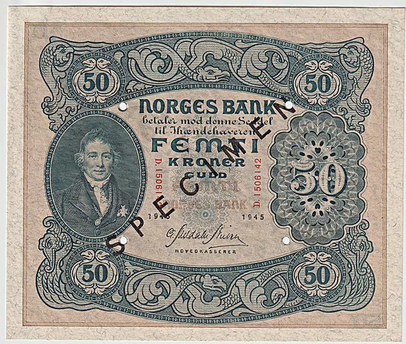 2378309: -27- 50 kroner 1945 D, specimen, kv. 0