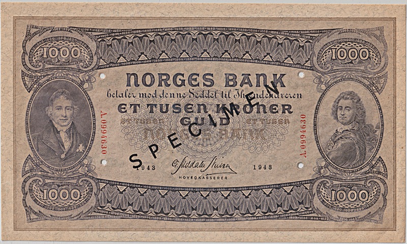 2378312: -30- 1000 kroner 1943 A, specimen, kv. 0/01