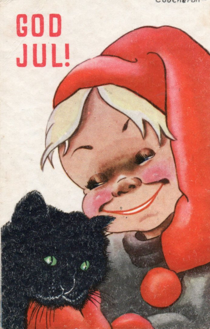 2378478: Coucheron. Nissegutt og svart katt. Oppi 621/1. Stmp.-51. Kv.2.