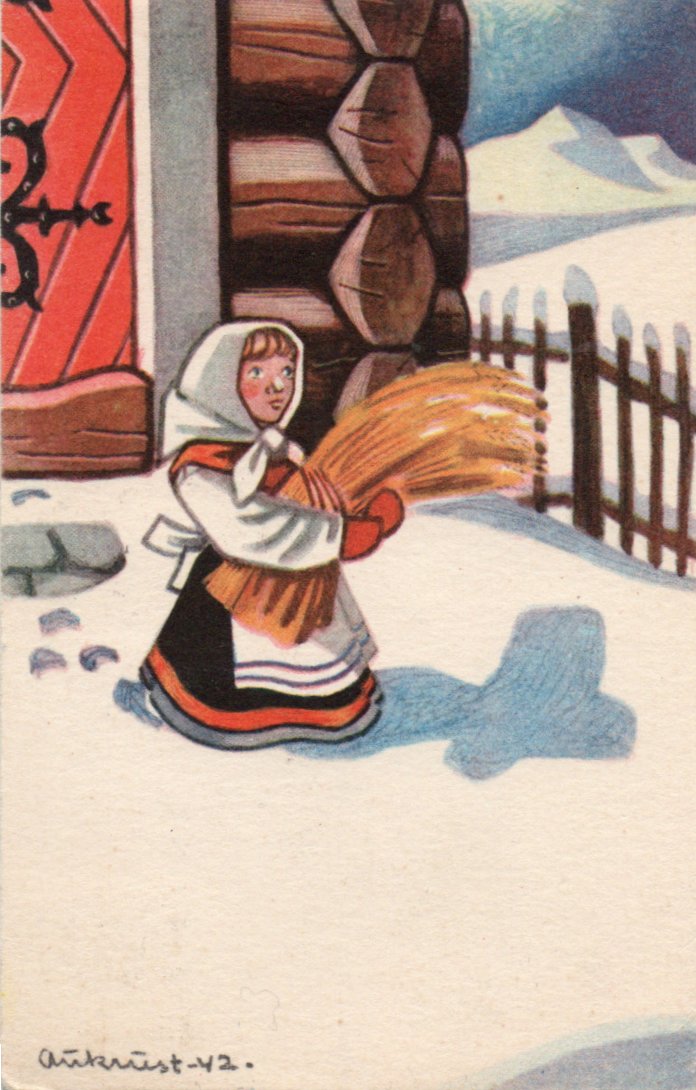 2378539: Aukrust. Jente med fuglenek. Oppi 551/1. Stmp.-42. Kval 1-2.
