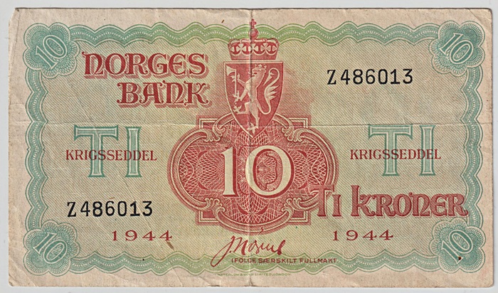 2379220: -9- 10 kr. 1944Z, London, kv. 1-, bretterift nede 1,5 mm.