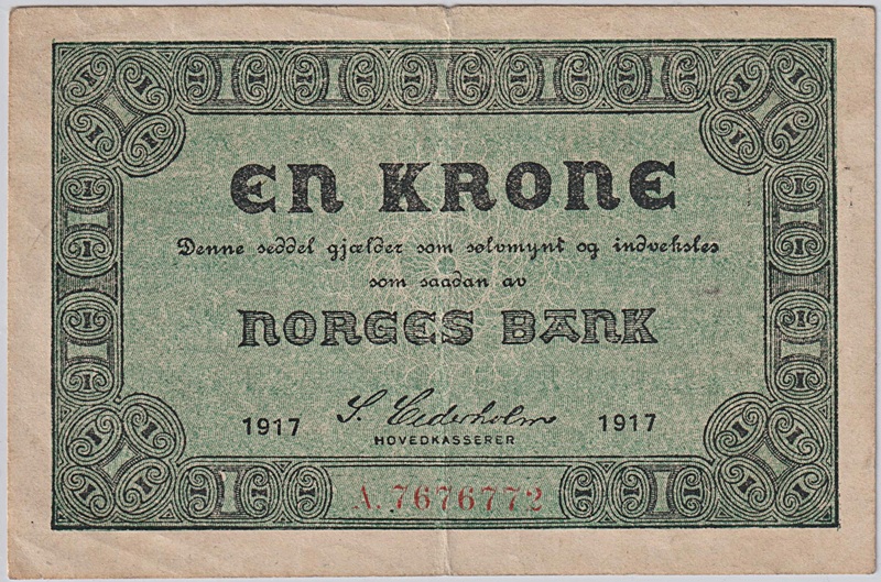 2380116: -1- 1 krone 1917A, kv. god 1, bretterift oppe.